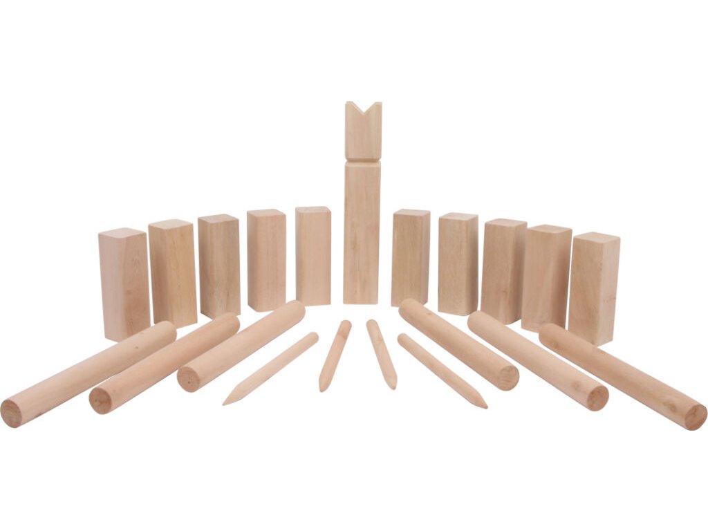 Ať už se tomu říká kubb nebo vikingský bowling, vikingská hra má mnoho jmen, všechny popisují totéž, čistá zábava! V této zábavné hře obratnosti je simulována bitva, ve které dva soupeřící týmy bojují o krále. Mnohem více než 1000 let, tak dlouho lidé trénovali s touto zábavnou hrou a zdokonalovali své soustředění. Postavičky z přírodního a hladkého broušeného dřeva, které potěší na zahradě i na výletech. Včetně přenosné sítě. Hlavní vlastnosti: včetně sítě na přenášení