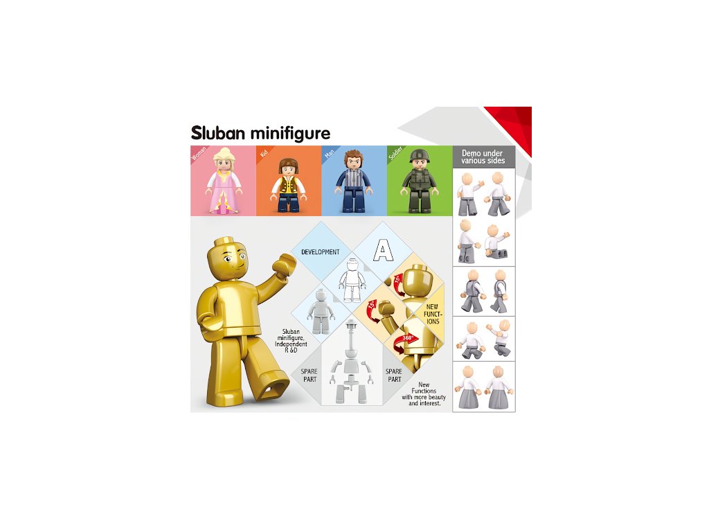 Série figurek pro inovativní stavebnice Sluban, které je možno kombinovat s podobnými stavebnicemi mnoha dalších významných výrobců. Jsou vyráběny z kvalitního, nezávadného a odolného ABS plastu. Každá figurka je vybavena podstavcem a příslušenstvím, balena v neprůhledném sáčku jako překvapení. Hlavní vlastnosti:12 variantvčetně podstavce a příslušenstvíbaleno jako překvapeníinovativní figurky s otáčivými i výkyvnými částmi tělkompatibilní se stavebnicemi dalších výrobců