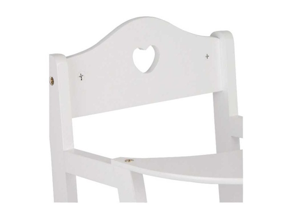 Tato jednoduchá dřevěná jídelní židlička rozbuší srdce všech panenek. Natřená bílou barvou a zdobená malým výřezem srdce je stylovým doplňkem, dětského pokojíčku. Díky svému neokázalému stylu se tato jídelní židlička ideálně hodí do dětských pokojů, ale také do obývacích pokojů. Hlavní vlastnosti: podporuje aktivní hraní a rozvoj sociálních dovedností stabilní konstrukce, kvalitní zpracovánívhodná i do školek