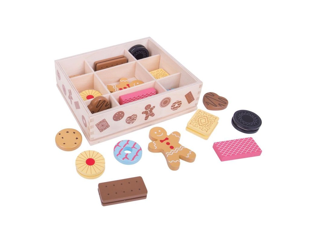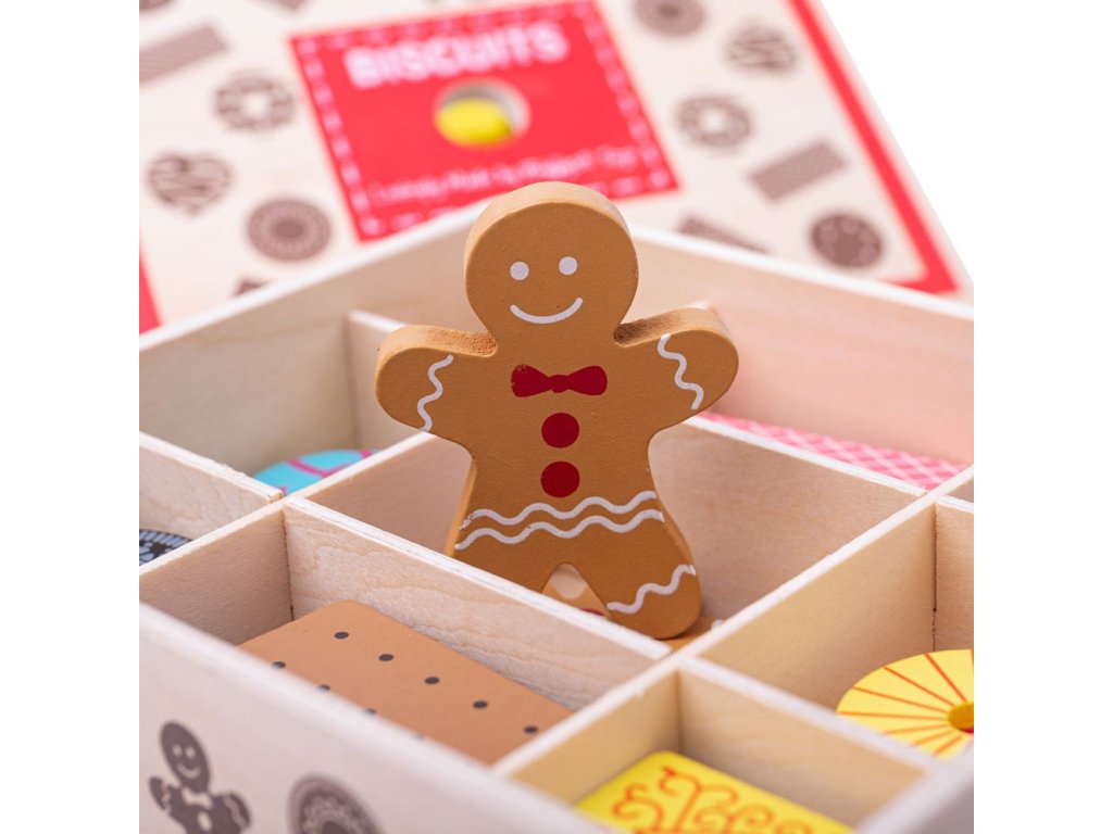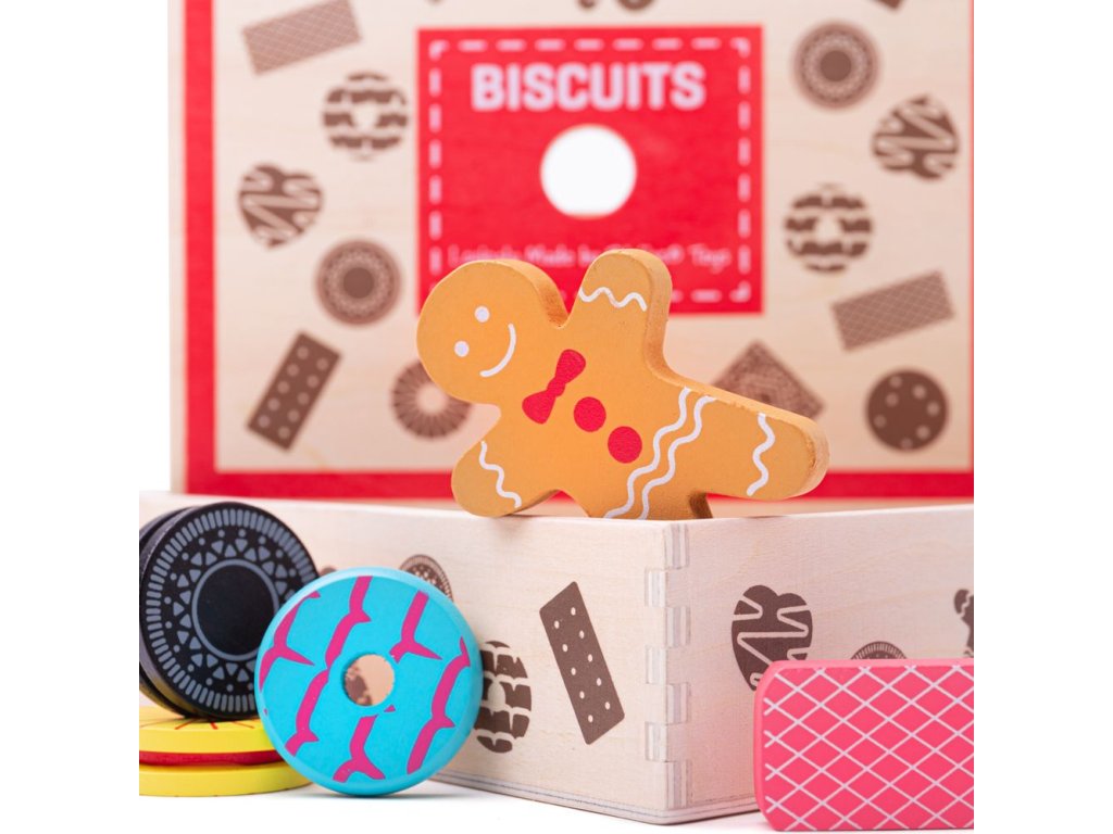 Tato dřevěná krabička na sušenky je plná lahodně vypadajících dřevěných dobrůtek. Zahrnuje sortiment sušenek, které každý miluje, včetně perníčků, laskominek atd. Odpolední čajový dýchánek může začít. Tento skvělý box na cukroví, je pomůcka, která pomůže vašemu malému dítěti dozvědět se víc o důležitosti zdravé a vyvážené stravy, odkud naše jídlo pochází a jak naše jídla připravujeme. Hlavní vlastnosti: sušenky lze úhledně uspořádat do hladké dřevěné krabice pro snadné skladovánívyrobeno z kvalitních materiálů vyhovuje současným evropským bezpečnostním normám