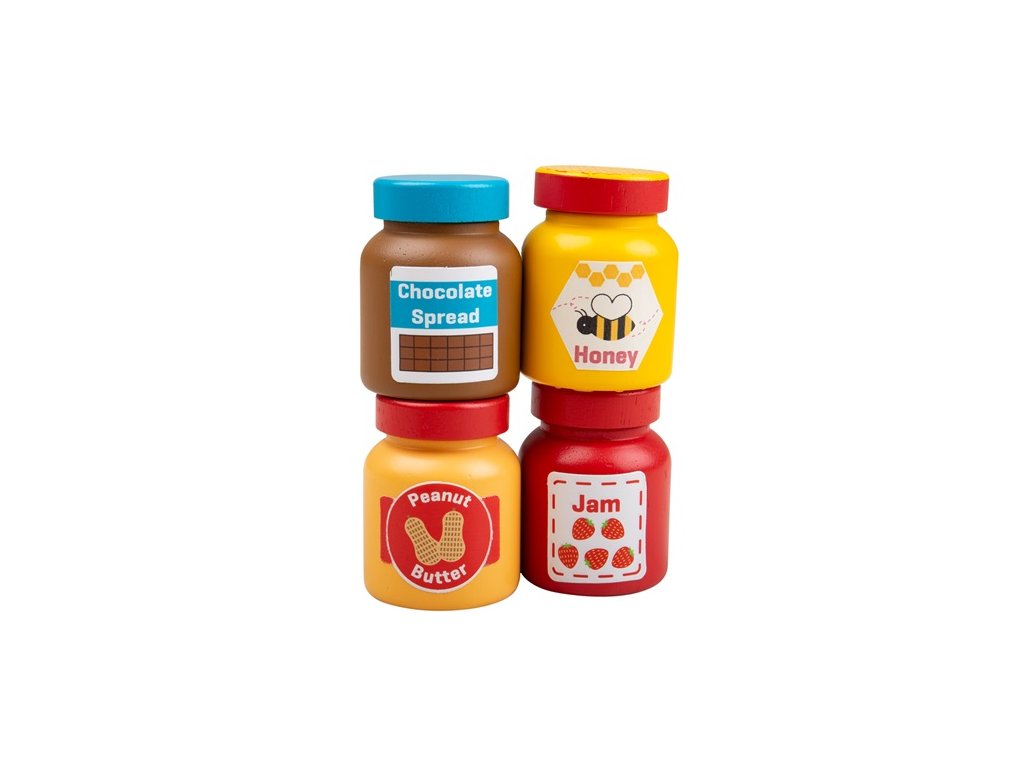 Toto realistické dřevěné hrací jídlo obsahuje čokoládovou pomazánku, med, arašídové máslo a džem. Bigjigs Toys dřevěné jídlo je ideální, aby pomohlo vašemu dítěti dozvědět se o významu zdravé a vyvážené stravy, odkud pochází naše jídlo a jak jídlo připravujeme. Hlavní vlastnosti: rozvíjí motoriku dětíučí správnému stravování