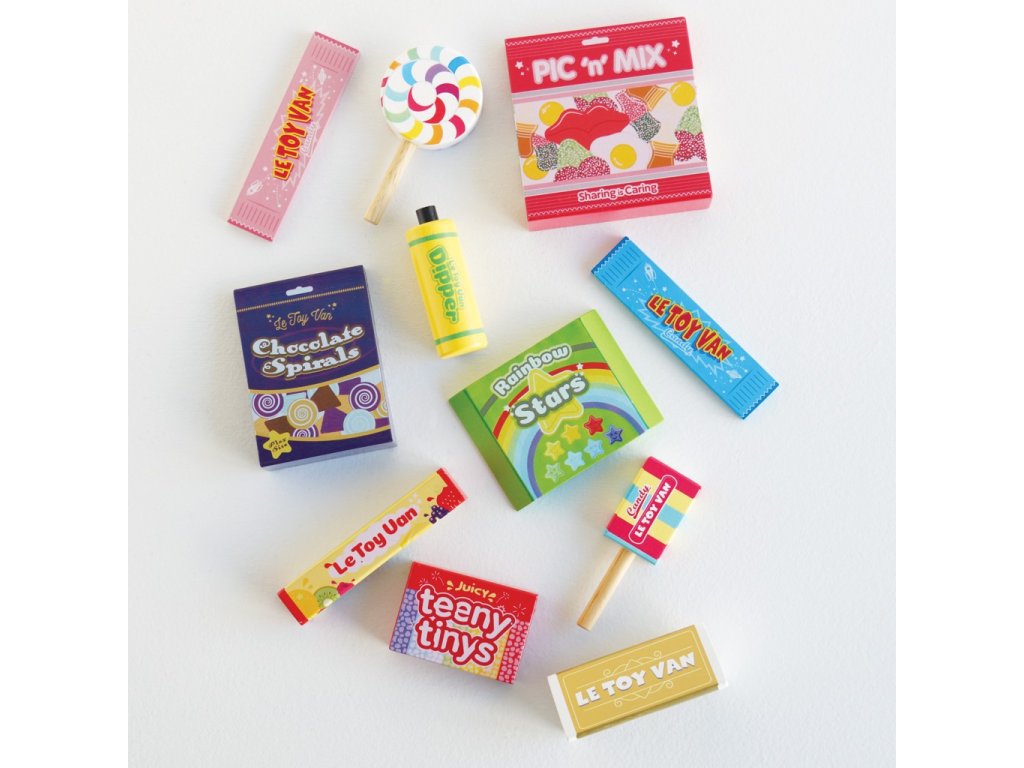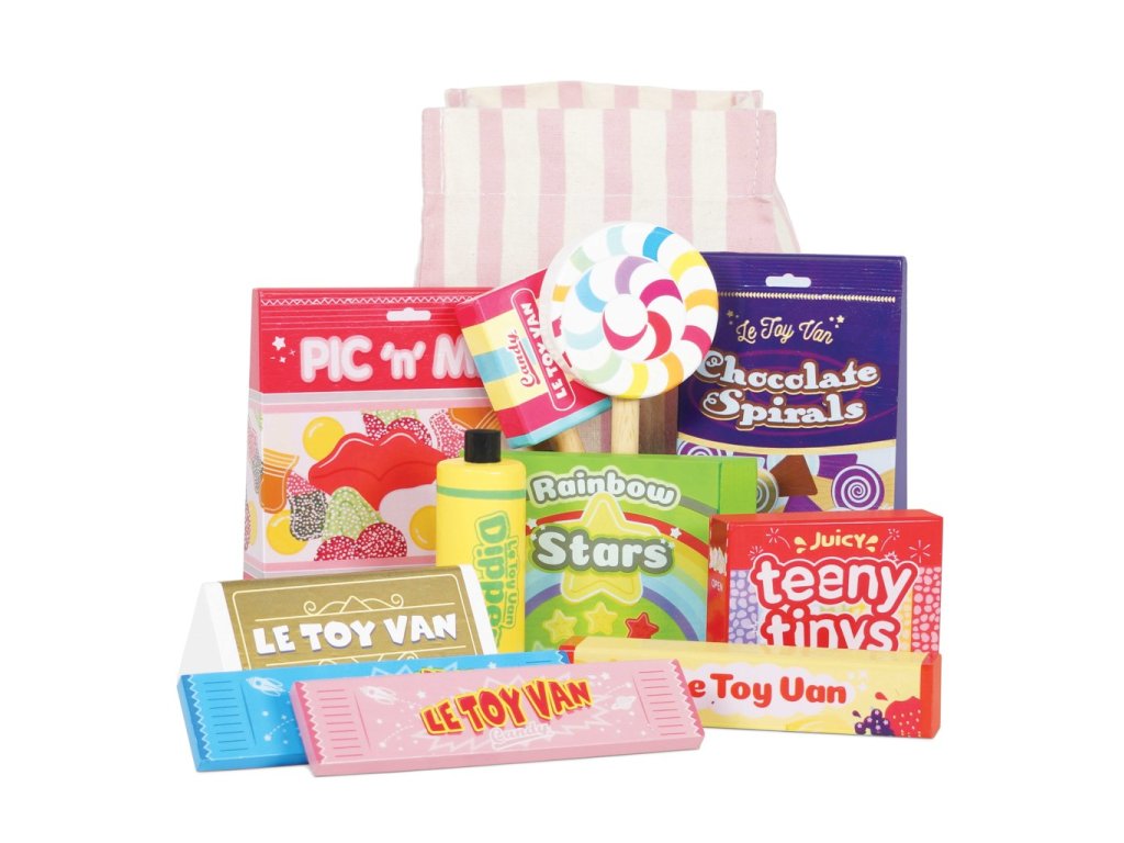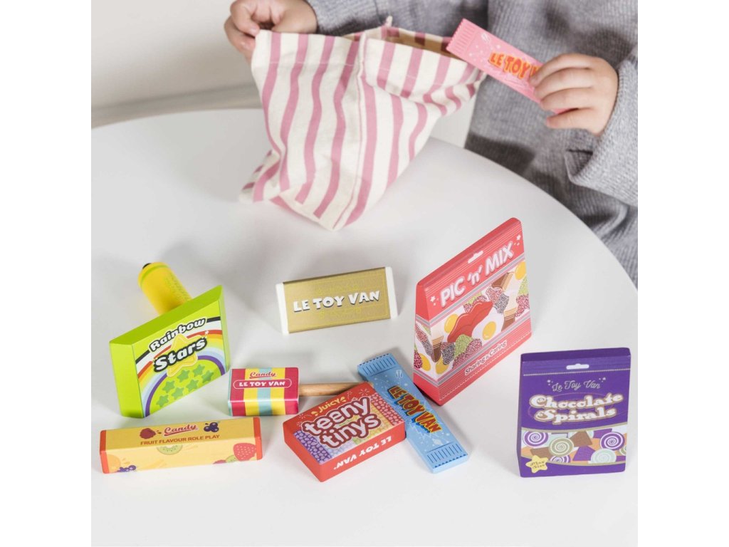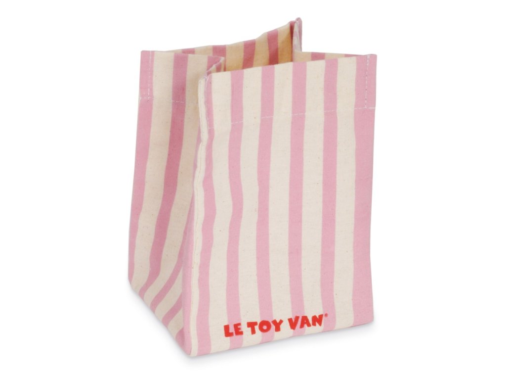 Tato hračka některým z vás přinese notnou dávku nostalgie. Pruhovaný retro pytlík se sladkostmi, to je mnoho sladké zábavy, bez bolesti zubů. Každá sladkost má unikátní ilustraci, na některých dokonce najdete zlatavé detaily. Tato hračka je vyrobena eticky z udržitelného kaučukového dřeva a je 100% bez obsahu plastu! Dřevěné sladkosti děti uvedou do magického světa představivosti. Hračky s účelemVšechny hračky firmy Le Toy Van jsou vyrobeny s cílem – aby dlouho vydržely. Designovány s láskou zkušenými řemeslníky za použití etických praktik a udržitelných materiálů, které jsou laskavější k naší planetě. Hlavní vlastnosti: vyrobeno eticky z udržitelného dřevatestováno dle nejpřísnějších standardůmalováno netoxickými barvami na bázi vodyinspiruje ke kreativní a představivé hřepomáhá s rozvojem řeči a sociálních dovednostípodporuje při raném vývoji Honeybake kolekce: Hračky v této kolekci jsou vhodné k objevování, pomohou dětem s rozvojem představivosti, sociálních a verbálních dovedností a kognitivních funkcí. Tradiční design s moderními detaily děti jistě bude bavit. Honeybake je kolekce Le Toy Van, která vyhrála nejvíce ocenění, a to za design, kvalitu, bezpečnost a také za vzdělávací a herní hodnotu.