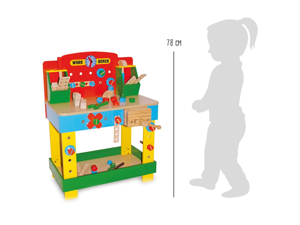 Jak dělat práci se dřevem jako dospělí? S tímto krásným pracovním stolem z masivního bukového dřeva a barevné překližky to půjde skvěle. Kluci zažijí spoustu skvělé zábavy. Pro nadšené malé kutily bude tento ponk inspirací k tvorbě a poznávání nářadí, materiálů a výrobních technologií. V neposlední řadě si kutilové prohloubí manuální zručnost. Součástí balení je vše dle obrázku.Hlavní vlastnosti: robustní konstrukcerozvíjí hmatové a smyslové dovednostinabádá ke kreativní hře