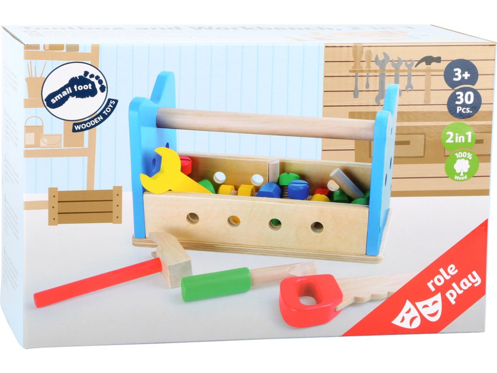 small foot Dřevěný pracovní stůl a box s nářadím 2v1