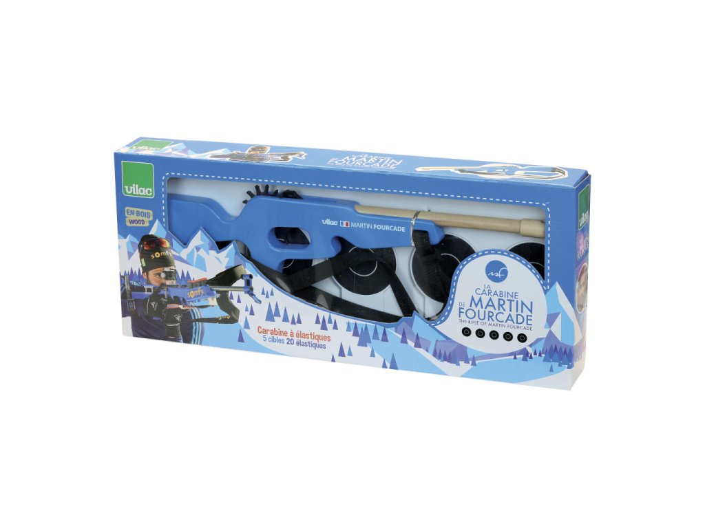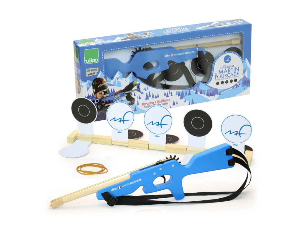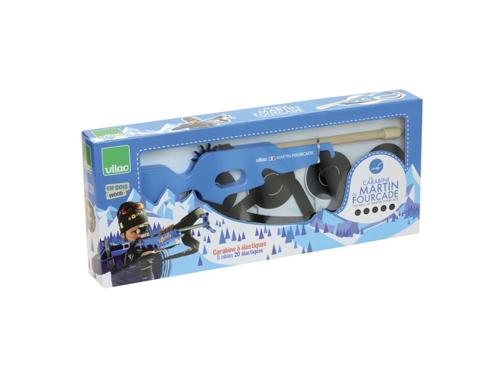 Máte doma malé sportovní nadšence, kteří se nezaleknou ani zimy? Tato hračka je přesně pro ně! Děti se při svých hrách většinou inspirují pohádkami, knížkami nebo televizními programy. Hrají u vás doma v zimním období hlavně sportovní programy? Pak je možné, že máte doma malé biatlonové nadšence. Češi fandí kromě hokeje a lyžování hlavně biatlonu. Představíme vám dnes dřevěnou hračku, která potěší mladé sportovní nadšence. Biatlonová malorážka francouzského sportovce Martina Fourcada. Fourcade je pětinásobný olympijský vítěz a držitel jedenácti zlatých medailí z MS. Pokud sledujete biatlon pravidelně jistě víte, jak je Martin pro svou disciplínu nadšený. Miluje nejen svůj sport, ale i své fanoušky a podporovatele. Je tedy přirozené, že chtěl něco udělat i pro ně – pro vás. Chtěl, aby i ti nejmenší měli možnost naučit se něco o biatlonu a hrát si na sportovce soutěžícího na mistrovství světa či olympiádě. Martin Fourcade se narodil a vyrostl ve Francii, možná i proto se rozhodl oslovit francouzskou firmu Vilac, která se zabývá návrhem a výrobou hraček. V zasněženém pohoří Jura spolu vymysleli projekt, který později nadchnul mnoho dětí a rodičů. Vyrobili Martinovu biatlonovou malorážku. Jako všechny hračky firmy Vilac je i tato malorážka vyrobena s ohledem na životní prostředí. Hračka je vyrobena ze dřeva a má nastavitelné textilní popruhy. Pažba malorážky je modrá, pod hlavní je umístěna vlajka Francie a jména autorů projektu – Martin Fourcade, Vilac. V balení najdete pět sklopných terčů a dvacet gumiček. Nastavte popruhy tak, aby vyhovovaly vašemu synovi, dceři nebo vám samotným. Postavte terče na požadovanou vzdálenost a dejte je do správné polohy. Ukažte dětem, jak správně a bezpečně gumičku natáhnout na dřevěnou malorážku. Teď už stačí jen zamířit a stisknout spoušť! Schválně, na kolik pokusů trefíte všech pět terčů? Hlavní vlastnosti: nastavitelné textilní popruhy v balení pět sklopných terčů a dvacet gumiček