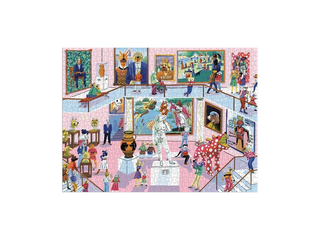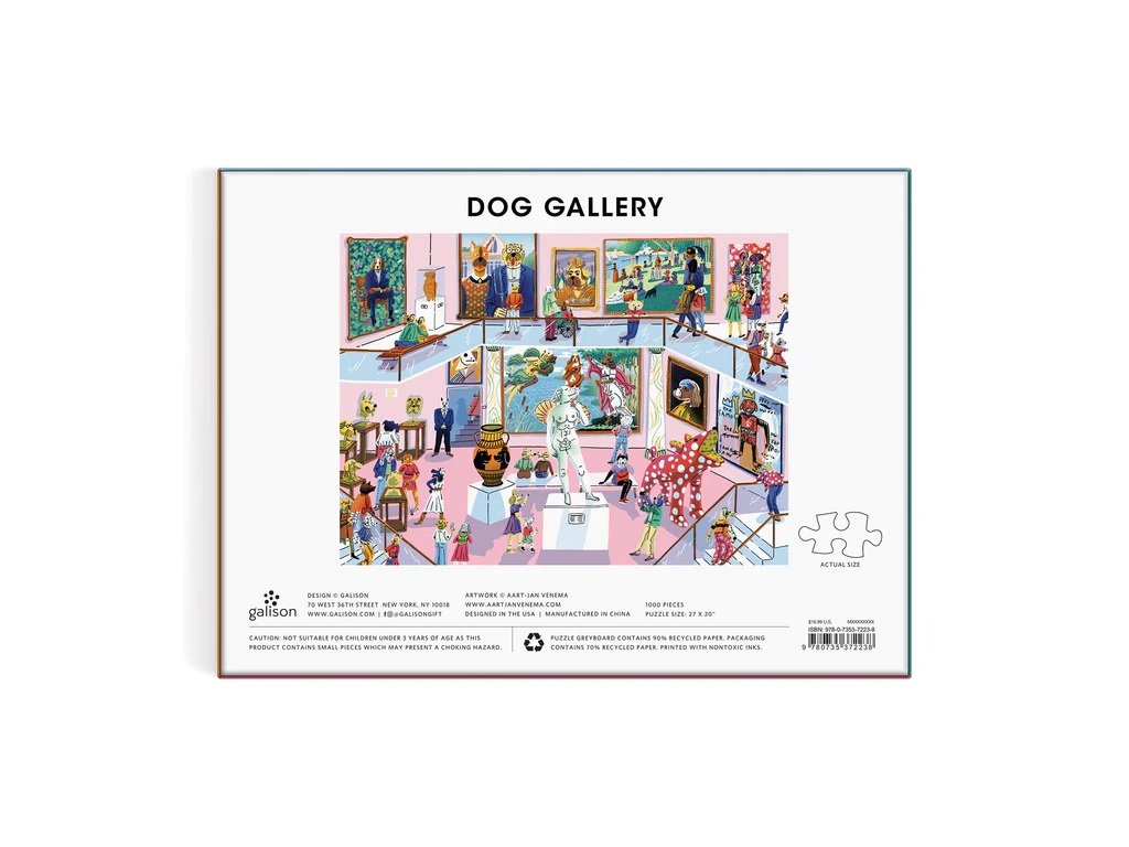 Puzzle obsahuje zábavnou ilustraci od Art-Jann Venema zobrazující galerii, kde si psi prohlížejí skvělé obrazy světa se psy místo lidí. Puzzle je baleno v pevné krabici, pro opětovné použití a skladování. Ideální jako dárek. Autorem obrázku je Art-Jann Venema. Puzzle jsou vyrobeny za použití významného podílu recyklovaného papíru a nabízí špičkový potisk nezávadnými barvami. Jsou opatřeny matnou povrchovou úpravou, která zajišťuje za všech okolností věrné podání detailů i barev. Jejich zadní strana je potažena hladkým, na dotek příjemným povrchem, díky němuž se při skladování rozloženého puzzle netvoří prach. Spolu s pečlivě zabalenými dílky naleznete v balení také letáček s návodným obrázkem, který zpravidla obsahuje další informace o tvůrcích a pozadí vzniku díla. Dodáváno v mimořádně pevné a poutavě zpracované kartonové krabičce vyrobené z recyklovaného kartonu a udržitelně získaných materiálů s certifikací FSC®. Hlavní vlastnosti: 1000 precizně vyřezaných dílkůvyrobeno s použitím recyklovaných a udržitelně získaných materiálůpečlivě vybraný motiv od renomovaných tvůrců a umělcůpotisk a provedení nejvyšší kvalityobsahuje návodný obrázek