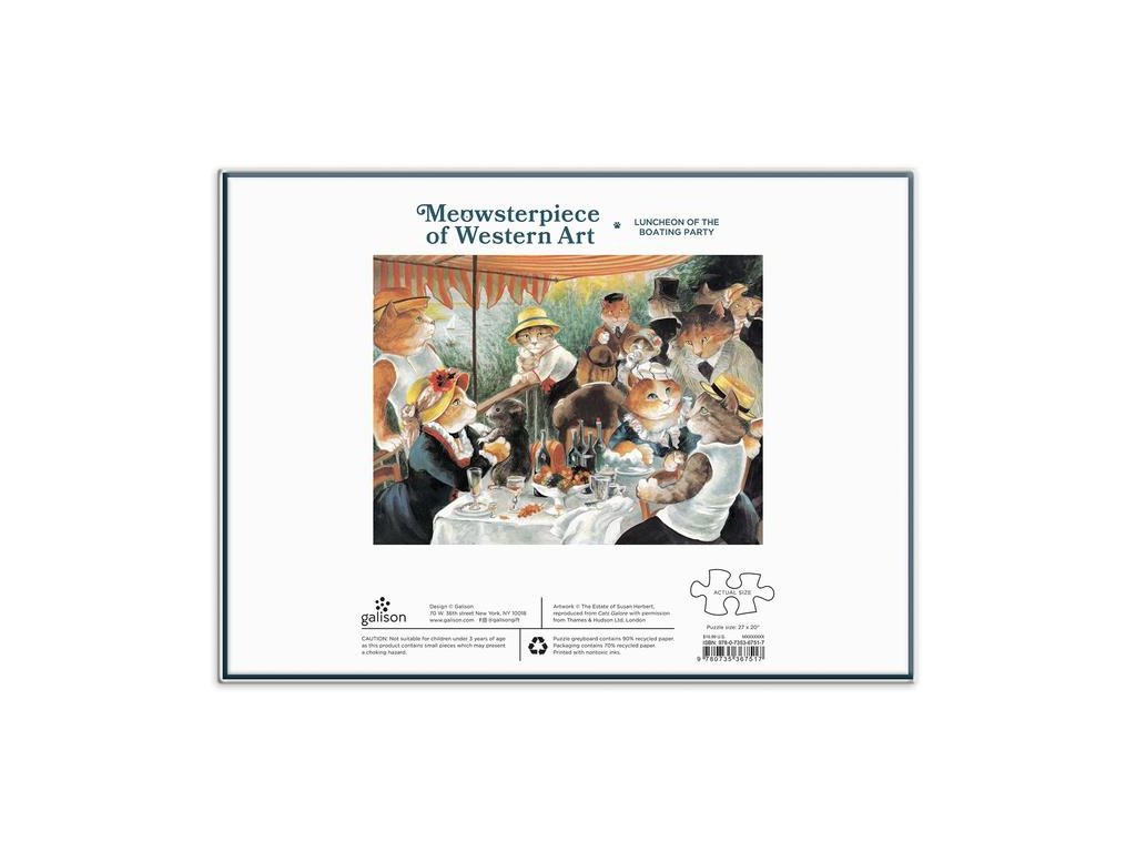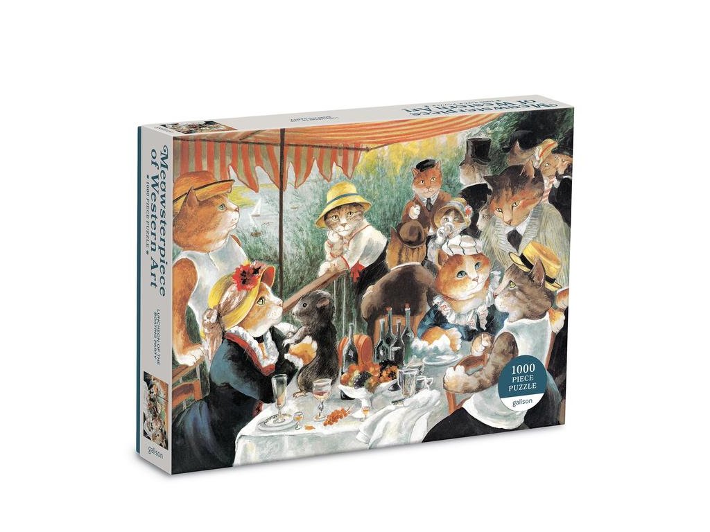 Puzzle je vtipná, láskyplná parodie na Renoirsovo ikonické dílo Snídaně veslařů od kočičí umělkyně Susan Herbert! Puzzle jsou baleny v pevných krabicích s matným povrchem. Hlavní vlastnosti: Obsahuje 1000 dílkůPotištěno netoxickými inkoustyPrémiová kvalita puzzleJednotlivé dílky do sebe přesně pasujíRozvíjí logické myšlení a motoriku