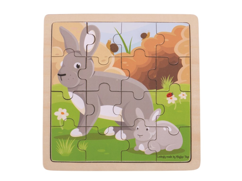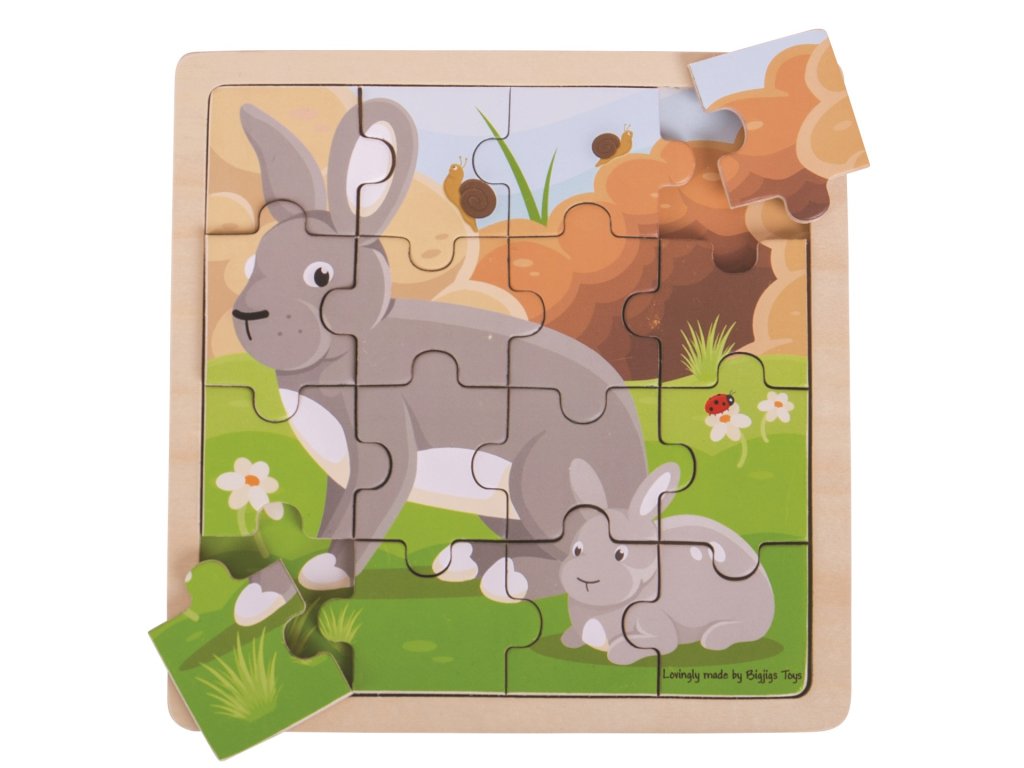 Malý králíček po boku své maminky odpočívající na jarní louce. 16 dílků robustního puzzle se vkládá na podklad se stejným motivem, Vaše dítko tak bude mít složený obrázek během chvilky. Rozměry dílků jsou uzpůsobeny snadnému uchopení dětských rukou. Puzzle pomáhá rozvíjet slovní zásobu, fantazii, motoriku a soustředění. Složené puzzle je v rámečku, nedochází k posunutí nebo zničení obrázku. Vyrobeno z vysoce kvalitních, odpovědně získaných materiálů. Odpovídá současným evropským bezpečnostním normám. Hlavní vlastnosti: obsahuje 16 dílkůrozvíjí slovní zásobu, fantazii, motoriku a soustředěnívyrobeno z vysoce kvalitních, odpovědně získaných materiálů