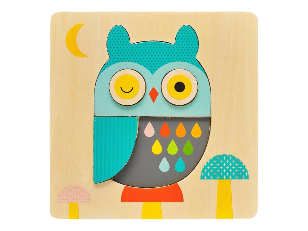 Roztomilé dřevěné vkládací puzzle sovička. Hlavní vlastnosti: rozvíjí motorikuvyrobeno z kvalitního certifikovaného dřevapoužity barvy na rostlinné bázi a šetrné k životnímu prostředí Značka a certifikát FSC® (Forest Stewardship Council) zaručuje, že dřevo, ze kterého byl produkt vyroben, nebylo vytěženo nelegálně a pochází z lesů obhospodařovaných šetrným či přírodě blízkým způsobem, ve kterém jsou dodržovány přísné environmentální a sociální požadavky. Značka FSC® na výrobku znamená, že svým nákupem pomáháte chránit lesy a podporujete šetrné, odpovědné či přírodě blízké hospodaření, díky kterému jsou naše lesy stabilnější, zdravější, mají přirozenou druhovou skladbu a lépe odolávají negativním následkům klimatických změn.
