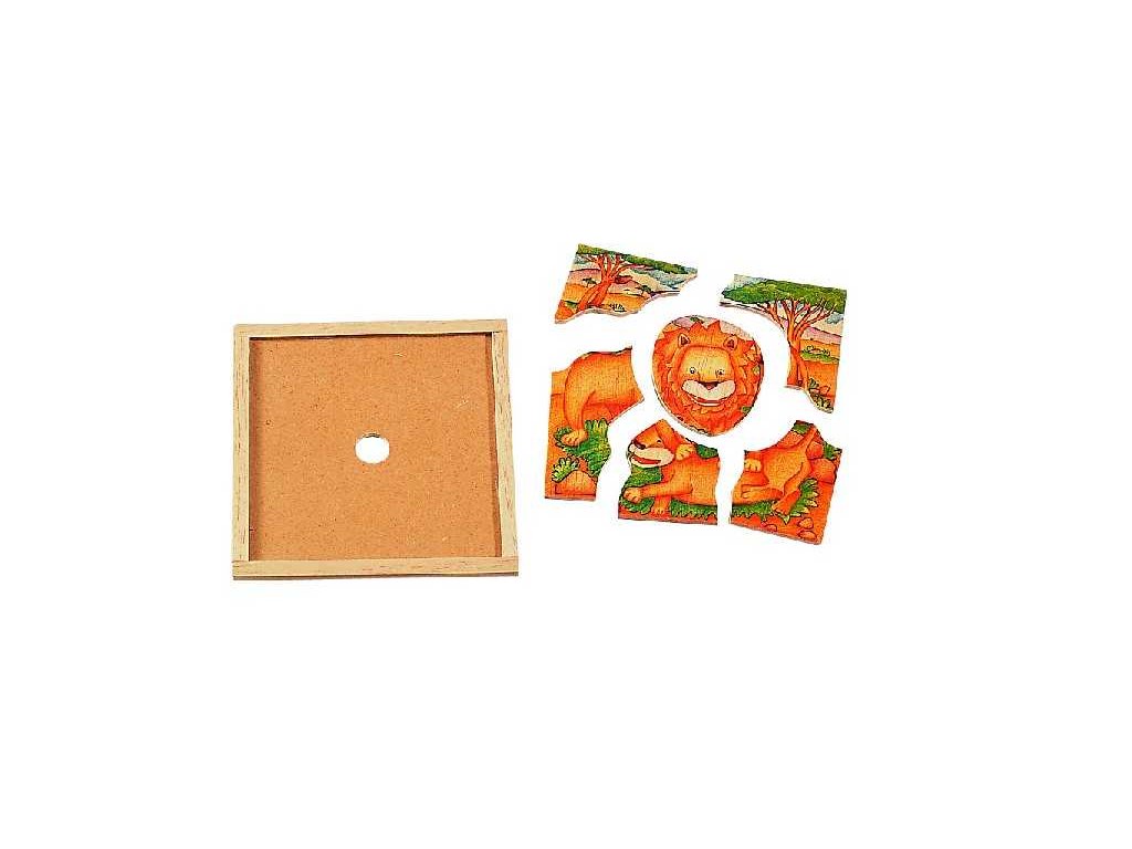Puzzle LEV z edice Safari je dřevěná skládačka pro nejmenší děti od 2 let. Deska je vyrobena tak, aby se daly dílky lehce vyjmout i méně obratnými prstíky. Hlavní vlastnosti:6 dílků a základna