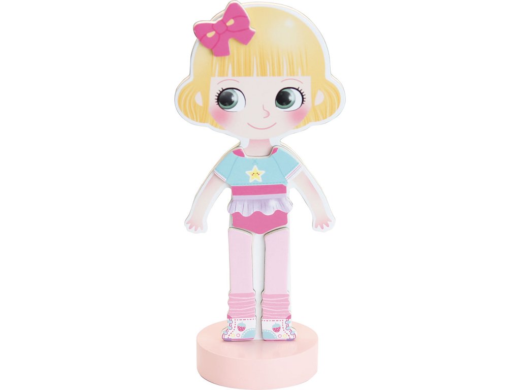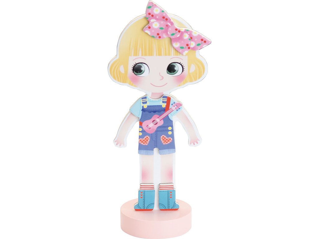 Oblečte Miu do různých outfitů! Dřevěná, 22 cm vysoká, magnetická panenka s 36 magnetickými dílky oblečení a doplňků. Hlavní vlastnosti: 1 figurka vysoká 22 cm na dřevěném podstavci36 dílků oblečení a doplňkůvyrobeno ekologicky, šetrně k životnímu prostředí