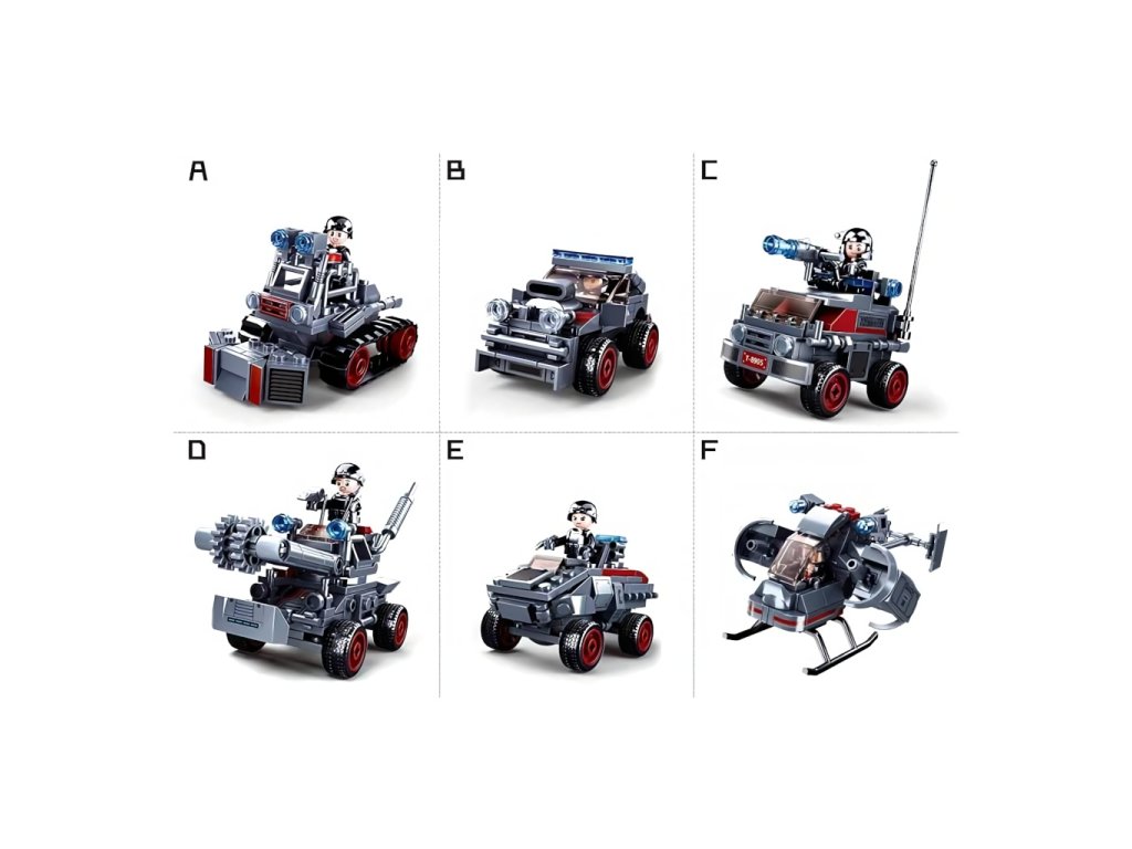 Série samostatných ministavebnic vojenské techniky, jejichž kompletací vznikne možnost sestavit velký ucelený model velitelského vozidla. Inovativní stavebnice Sluban je možno kombinovat s podobnými stavebnicemi mnoha dalších významných výrobců. Jsou vyráběny z kvalitního, nezávadného a odolného ABS plastu. Každá stavebnice je opatřena návodem k sestavení a balena v pestře potištěné papírové krabičce. Hlavní vlastnosti:1247 dílků a 6 figurek celkem, 78–107 dílků a 1 figurka jednotlivěstřední obtížnost2 úrovně složitosti, kompletací série lze sestavit velký modelinovativní figurky s otáčivými i výkyvnými částmi tělkompatibilní se stavebnicemi dalších výrobců