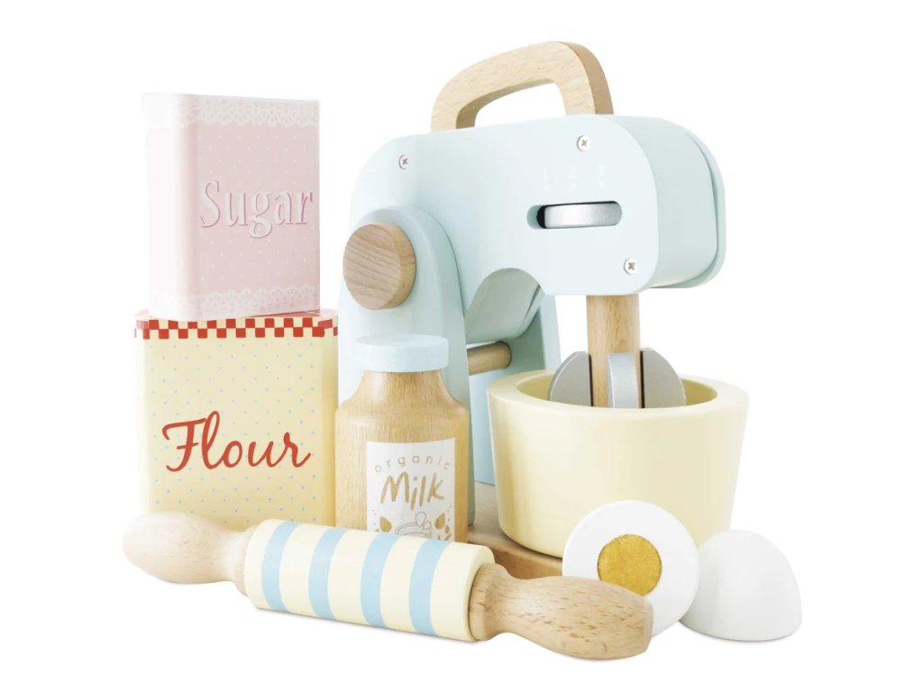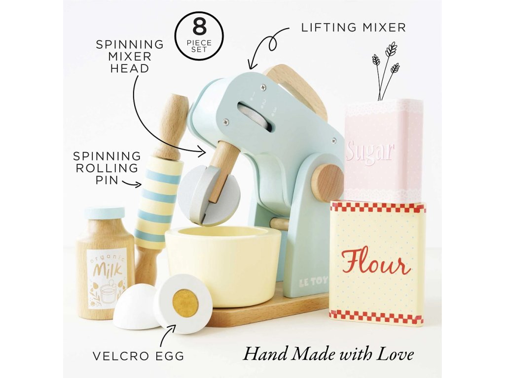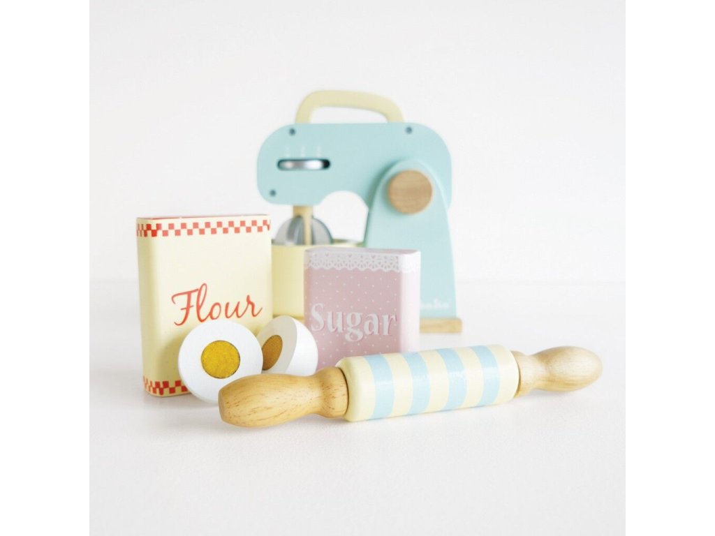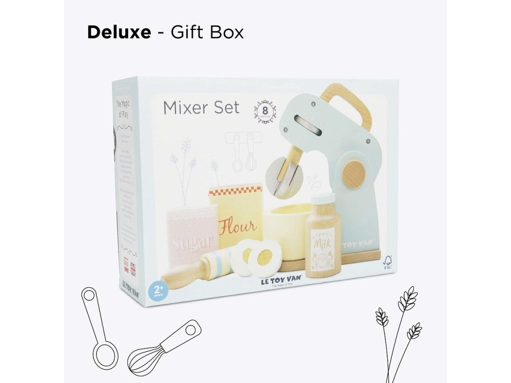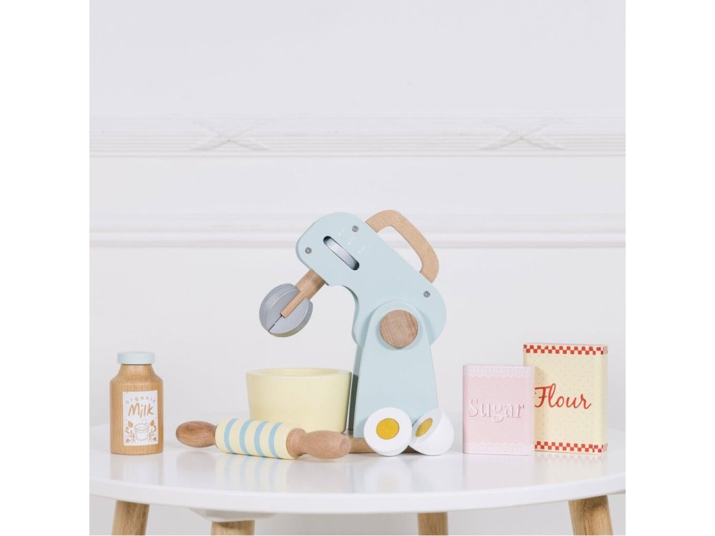 Co upečou malí pekaři a pekařky? Kuchyňský robot s příslušenstvím je připraven k představivé hře! V balení otočná metlička, dřevěný váleček a mísa. Tato krásná retro hračka je malována pastelovými barvami, nechybí ani ingredience k jejímu použití – mouka, cukr, mléko a vejce. Děti mohou „upéct“ dort, sušenky nebo buchtu ve vlastní dětské kuchyňce! Hračky s účelemVšechny hračky firmy Le Toy Van jsou vyrobeny s cílem – aby dlouho vydržely. Designovány s láskou zkušenými řemeslníky za použití etických praktik a udržitelných materiálů, které jsou laskavější k naší planetě. Hlavní vlastnosti: vyrobeno eticky z udržitelného dřevatestováno dle nejpřísnějších standardůmalováno netoxickými barvami na bázi vodyinspiruje k představivé hřerozvíjí kognitivní dovednosti Ocenění hračky:Loved By Children Gold Award 2017 Honeybake kolekce: Hračky v této kolekci jsou vhodné k objevování, pomohou dětem s rozvojem představivosti, sociálních a verbálních dovedností a kognitivních funkcí. Tradiční design s moderními detaily děti jistě bude bavit. Honeybake je kolekce Le Toy Van, která vyhrála nejvíce ocenění, a to za design, kvalitu, bezpečnost a také za vzdělávací a herní hodnotu. Značka a certifikát FSC® (Forest Stewardship Council) zaručuje, že dřevo, ze kterého byl produkt vyroben, nebylo vytěženo nelegálně a pochází z lesů obhospodařovaných šetrným či přírodě blízkým způsobem, ve kterém jsou dodržovány přísné environmentální a sociální požadavky. Značka FSC® na výrobku znamená, že svým nákupem pomáháte chránit lesy a podporujete šetrné, odpovědné či přírodě blízké hospodaření, díky kterému jsou naše lesy stabilnější, zdravější, mají přirozenou druhovou skladbu a lépe odolávají negativním následkům klimatických změn.