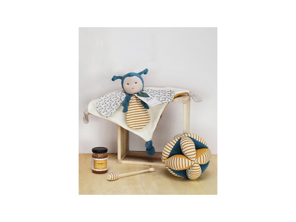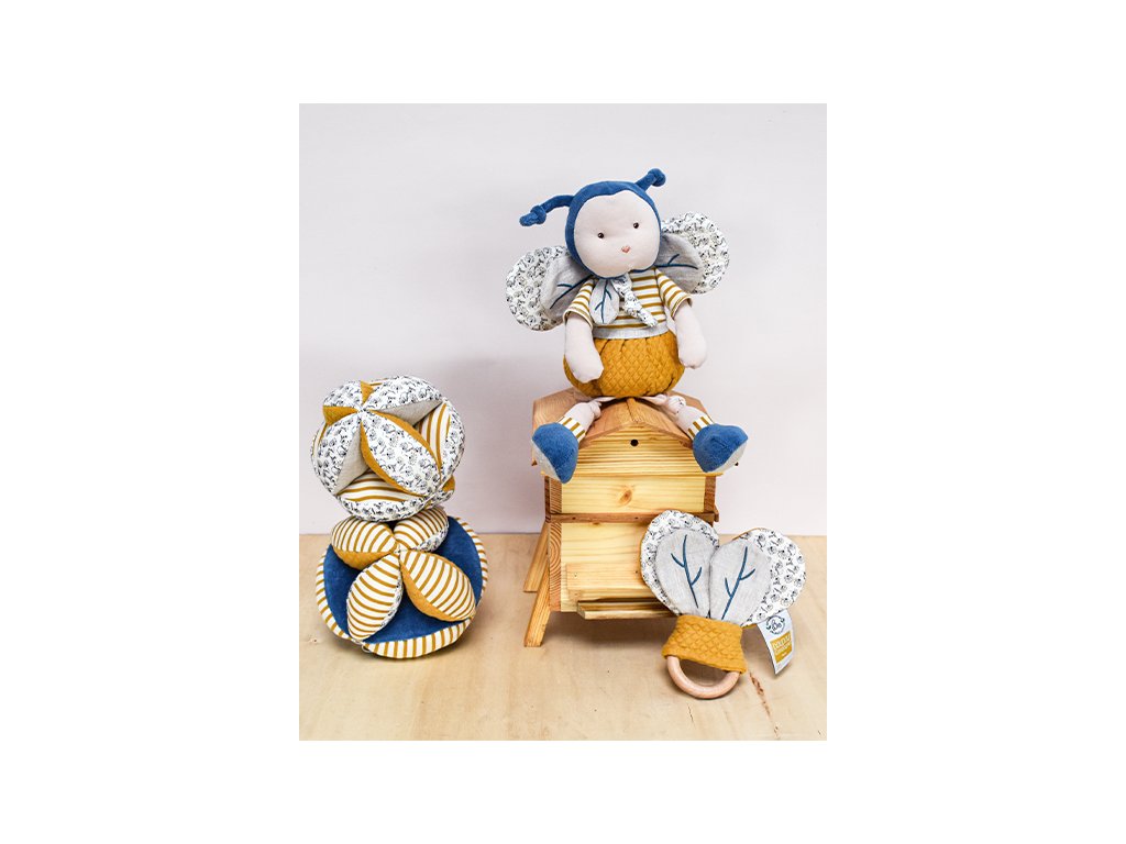 Doudou Textilní aktivní míč s chrastítkem včelka 15 cm