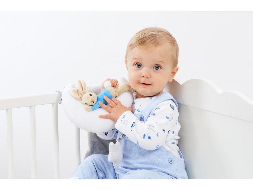Tato hračka pomůže dětem usnout! Hrací plyšák králíček Petr, kterého můžete zavěsit na postýlku bude dětem hrát na dobrou noc jemnou melodii.
