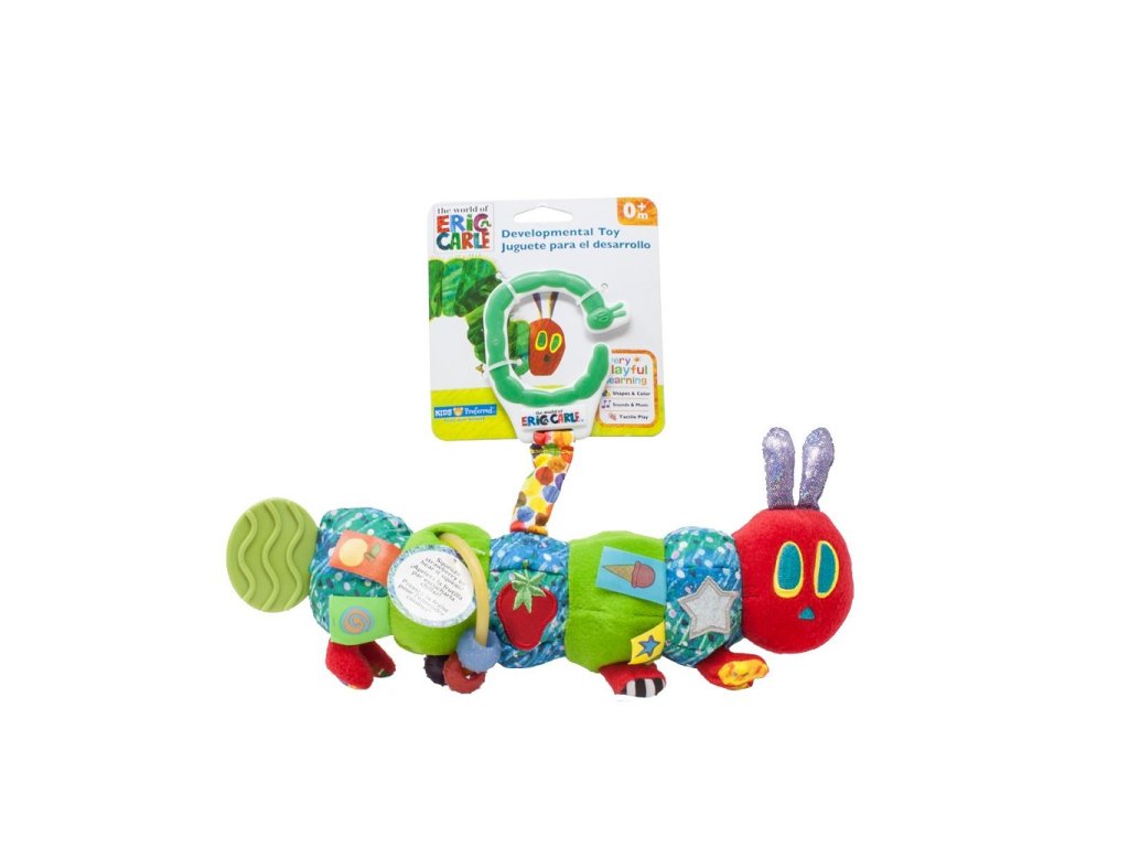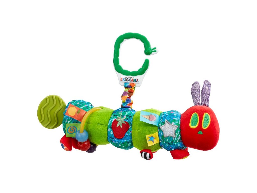 Nejslavnější postava pohádky "Very Hungry Caterpillar" od Erica Carlea jako zábavná plyšová hračka! Světlé látky s různými texturami spolu s hedvábnými stuhami, pestrými korálkami, řinčivými zvuky a chrastěním podporují smyslovou hru. Ocas housenky lze využít jako kousátko! Díky nastavitelnému plastovému madlu se tato hračka snadno vyjímá. Hlavní vlastnosti: podporuje vývoj děťátkanapomáhá k rozvíjení smyslůvhodné od narození