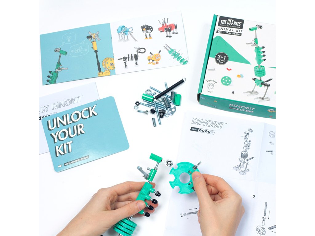 Od hlavy k ocasu! DinoBit je milovník historie. Díky sortimentu barevných matic, šroubů a tvarovaných kousků je tento dinosaurus nelítostně loajální. Popusťte uzdu své fantazii. Tato sada umožňuje vytvoření tří modelů s dalšími nekonečnými možnostmi pro vaše vlastní kreativní nápady. Jedná se o hračku, která pomáhá mladým lidem růst v oblastech vědy, technologie, inženýrství, umění a matematiky. Hračky OffBits také podporují rozvoj jemné motoriky, prostorové představivosti, řešení problémů a nápadité hry. Co můžete postavit:DinosauraBit, dinosauří mláděBit, autoBit 4x4 plus nekonečné množství jedinečných výtvorů, které můžete postavit pomocí své fantazie. Máte kolem sebe karton, šroubky nebo jiné zábavné materiály? Vylepšujte s předměty každodenní potřeby a vytvořte také své vlastní jedinečné vynálezy. Hlavní vlastnosti: obsahuje nářadí pro sestavení stavebnicekompatibilnost s každodenními předmětyrozvoj kreativity, jemné motoriky i logického myšlenívhodné od šesti let3 v 1 Ilustrační foto balení: