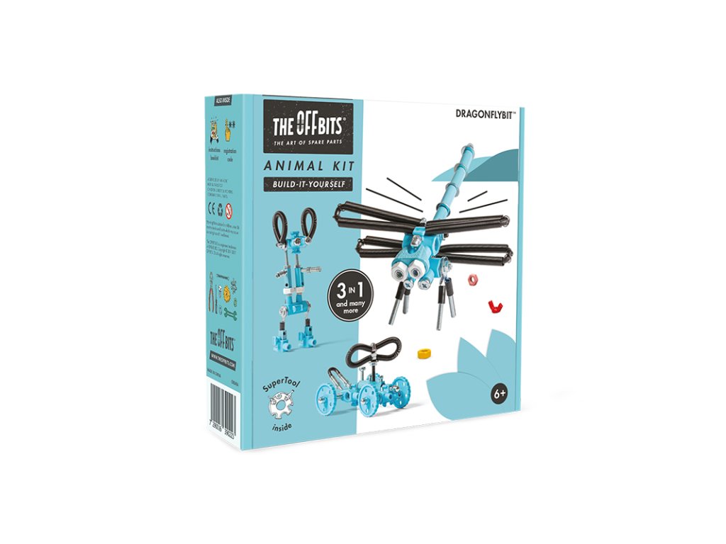 Seznamte se s rychlým a okouzlujícím DragonflyBit. Toto fascinující stvoření se svými čtyřmi velkými křídly létá neuvěřitelnou rychlostí a bez námahy chytá mouchy a komáry. Tento neuvěřitelný hmyz je tvořen řadou barevných matic, šroubů a tvarovaných kousků. Popusťte uzdu své fantazii. Tato sada umožňuje vytvoření tří modelů s dalšími nekonečnými možnostmi pro vaše vlastní kreativní nápady. Jedná se o hračku, která pomáhá mladým lidem růst v oblastech vědy, technologie, inženýrství, umění a matematiky. Hračky OffBits také podporují rozvoj jemné motoriky, prostorové představivosti, řešení problémů a nápadité hry. Co můžete postavit:DragonflyBit, TrackerBit a RazorBit plus nekonečné množství jedinečných výtvorů, které můžete postavit pomocí své fantazie. Máte kolem sebe karton, šroubky nebo jiné zábavné materiály? Vylepšujte s předměty každodenní potřeby a vytvořte také své vlastní jedinečné vynálezy. Hlavní vlastnosti: obsahuje nářadí pro sestavení stavebnicekompatibilnost s každodenními předmětyrozvoj kreativity, jemné motoriky i logického myšlenívhodné od šesti let3 v 1 Ilustrační foto balení: