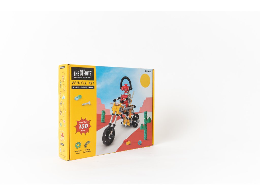 Pořádně se projeďte! RiderBit je robot jezdící na motorce. Díky více než 200 dílkům a sortimentu kol a chytrých spojů si váš robot může užívat jízdu Popusťte uzdu své fantazii. Tato sada umožňuje vytvoření tří modelů s dalšími nekonečnými možnostmi pro vaše vlastní kreativní nápady. Jedná se o hračku, která pomáhá mladým lidem růst v oblastech vědy, technologie, inženýrství, umění a matematiky. Hračky OffBits také podporují rozvoj jemné motoriky, prostorové představivosti, řešení problémů a nápadité hry. Co můžete postavit:MotorkuBit a robotBit plus nekonečné množství jedinečných výtvorů, které můžete postavit pomocí své fantazie. Máte kolem sebe karton, šroubky nebo jiné zábavné materiály? Vylepšujte s předměty každodenní potřeby a vytvořte také své vlastní jedinečné vynálezy. Hlavní vlastnosti: obsahuje nářadí pro sestavení stavebnicekompatibilnost s každodenními předmětyrozvoj kreativity, jemné motoriky i logického myšlenívhodné od osmi letvíce než 200 dílů Ilustrační foto balení: