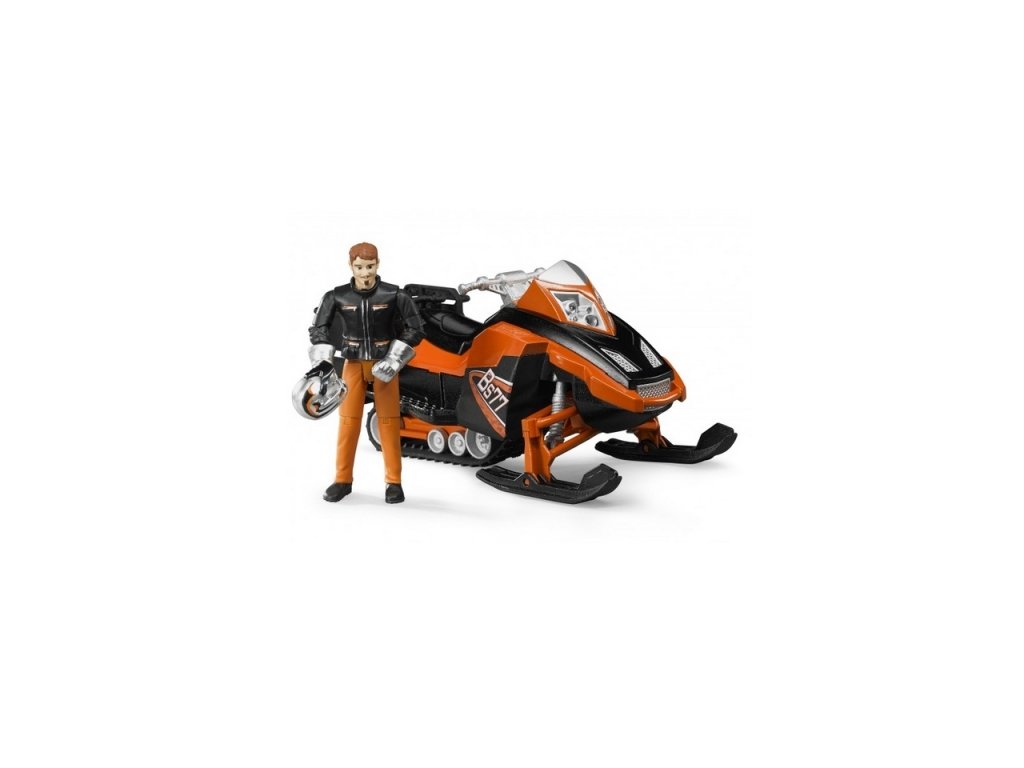 Oranžový sněžný skútr s figurkou má dvojité sedadlo pro 2 figurky BWORLD, dva držáky nářadí, odnímatelné závěsné zařízení, odnímatelné držáky batohů s uchycením krabic s nářadím. Skútr má gumové pásy a zatáčecí lyžiny. Figurka řidiče má helmu a rukavice. Vyrobeno v Německu, z kvalitních materiálů. Hlavní vlastnosti: sněžný skútr s figurkou ze série BWORLD mnoho funkcívyrobeno v Německu