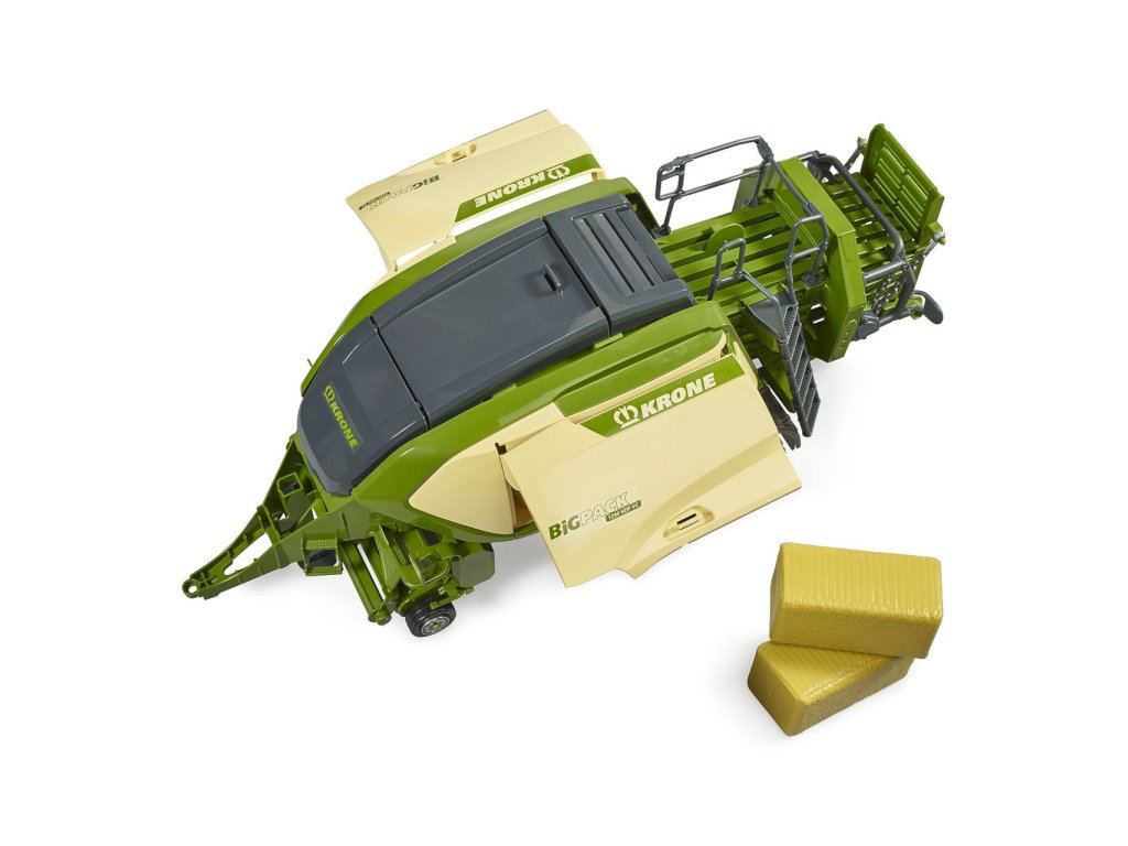 Jen pečlivě slisované a svázané balíky lze snadno stohovat. Lis na balíky BiG Pack 1290 dokládá desetiletí neutuchající snahu výrobce KRONE zdokonalovat technická řešení pro zemědělskou výrobu. Stejně jako předloha také propracovaný model BRUDER nabízí vylepšené funkce v prvotřídním provedení. Realisticky zpracované řezací rotory jsou po sklopení sběrače poháněny bočními koly. Horní klapkou pak můžete do stroje vložit balíky a ty jsou následně mechanikou dopraveny na vyhazovací rampu. Tu je samozřejmě možno pro účely transportu realisticky sklápět. Výsuvná opěrná noha stroje se dá odnímat. Díky odklopným bočnicím lze obdivovat ústrojí lisu a přistupovat k němu při servisních zásazích. Lis je široce kompatibilní s traktory řad 20xx, 21xx, 30xx, 31xx, 40xx. Vyrobeno v Německu, z kvalitních materiálů. Hlavní vlastnosti:sklopný pohyblivý sběračfunkční mechanický dopravník balíkůsklopná rampa a odnímatelná opěrná nohaodklopné bočnice, realisticky ztvárněné ústrojíširoká kompatibilita s traktory Brudervyrobeno v Německu