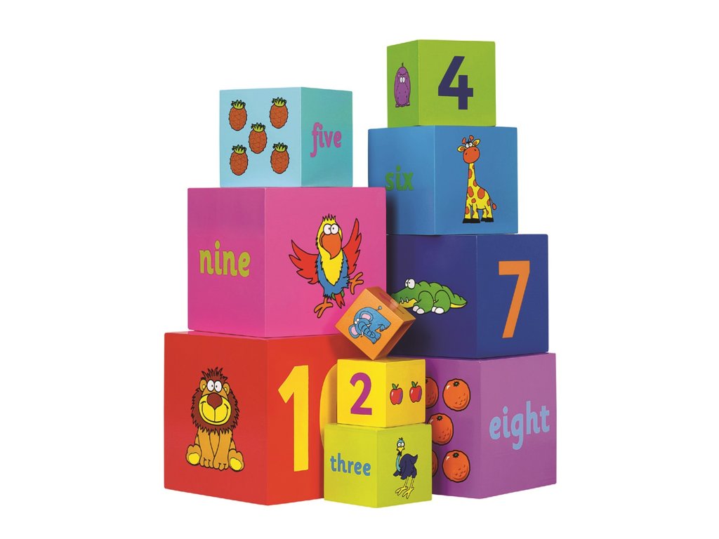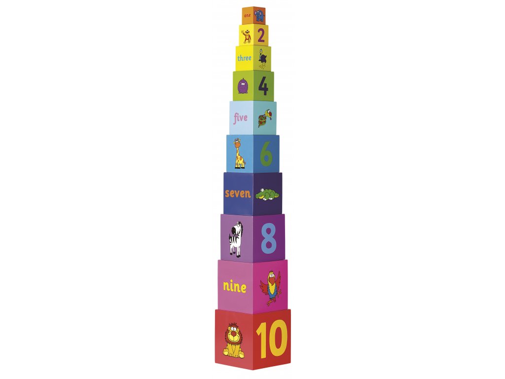 Kostky rozdílných velikostí, zkuste je naskládat na sebe ve správném pořadí od největší po nejmenší a vytvořte věž. Každá kostka má na jedné straně číslici od 1 do 10 a krásnou ilustraci, která koresponduje s číslem kostky. Například číslo 8 a osm pomerančů. Při skládání děti mohou na každé kostce vyjmenovat zvíře nebo objekt, což jim pomůže s jazykovými dovednostmi a slovní zásobou, spočítat tečky a zkontrolovat, jestli výsledek odpovídá číslici, což jim pomůže s počty a poznáváním čísel. Perfektní hračka pro nejmenší je všestrannou učební pomůckou, podporuje brzký rozvoj čtení, počítání, poznávání barev a tvarů, poznávání zvířat. Až si děti dohrají, mohou kostky naskládat na sebe, nezaberou moc úložného prostoru. Rozvíjí koordinaci ruka-oko, jemnou motoriku a zručnost. Vyrobeno z kvalitních materiálů z odpovědných zdrojů. Odpovídá evropské bezpečnostní normě. Hlavní vlastnosti: všestranná učební pomůckakrásná ilustracerozvíjí jemnou motoriku a zručnost