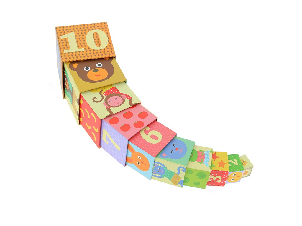 Deset kartonových skládacích kostek s krásnými ilustracemi zvířat. Děti se při hraní naučí jak skládat kostky, tak rozpoznávat zvířata, barvy a počty. Rozvíjí koordinaci zraku a rukou, a tím celkovou zručnost dětí. Hlavní vlastnosti: 10 ks kostekkrásné ilustrace zvířatvyrobeno ekologicky, šetrně k životnímu prostředídesign Mélusine Allirol