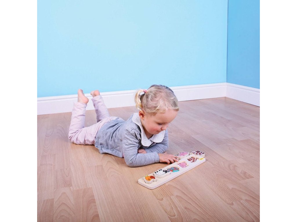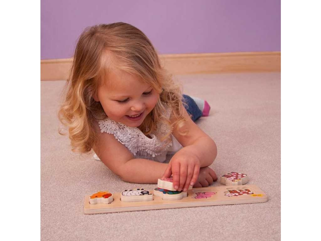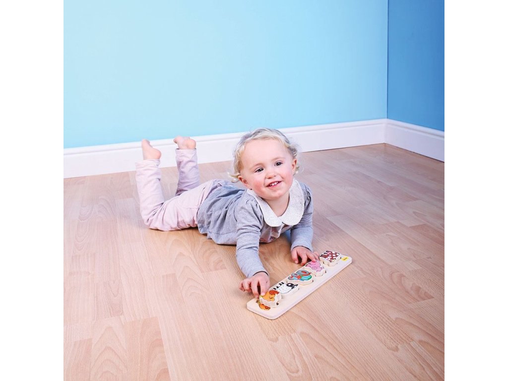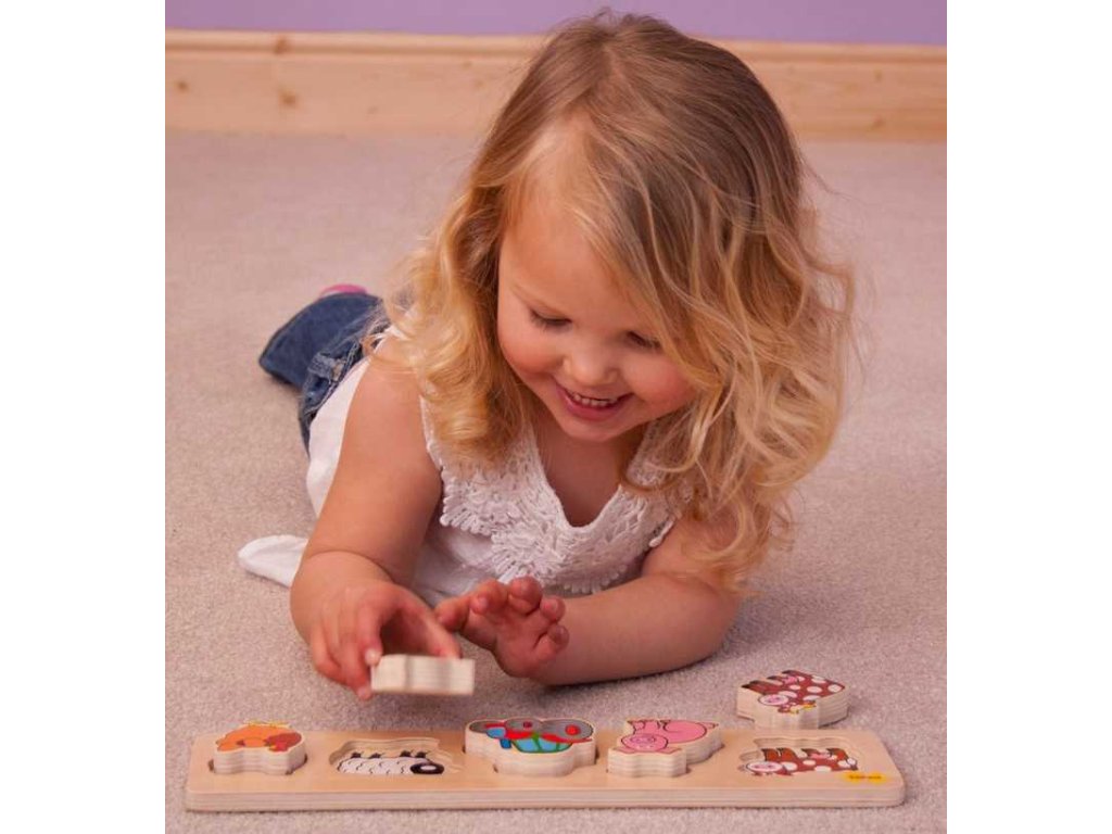 Přiřadte obrázky jednotlivých kousků se stejnými obrázky na dřeněném panelu. Při tom můžete s dítětem mluvit o jednotlivých zvířátkach a učit jej, jaké zvuky které zvíře vydává. Kompaktní rozměry zajišťují spoustu využití doma nebo na cestách. Pro tohle vkládací puzzle je charakteristická tloušťka použitého materiálu - dřeva 2 cm, dětem to zjednodušuje úchop dílků. Hlavní vlastnosti: vyrobeno z vysoce kvalitních materiálů, které pocházejí ze zodpovědných zdrojůvyhovuje současným evropským bezpečnostním normám