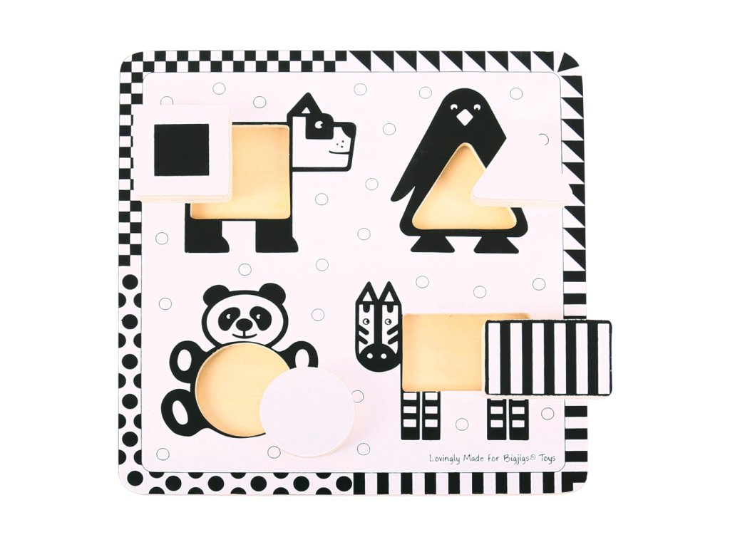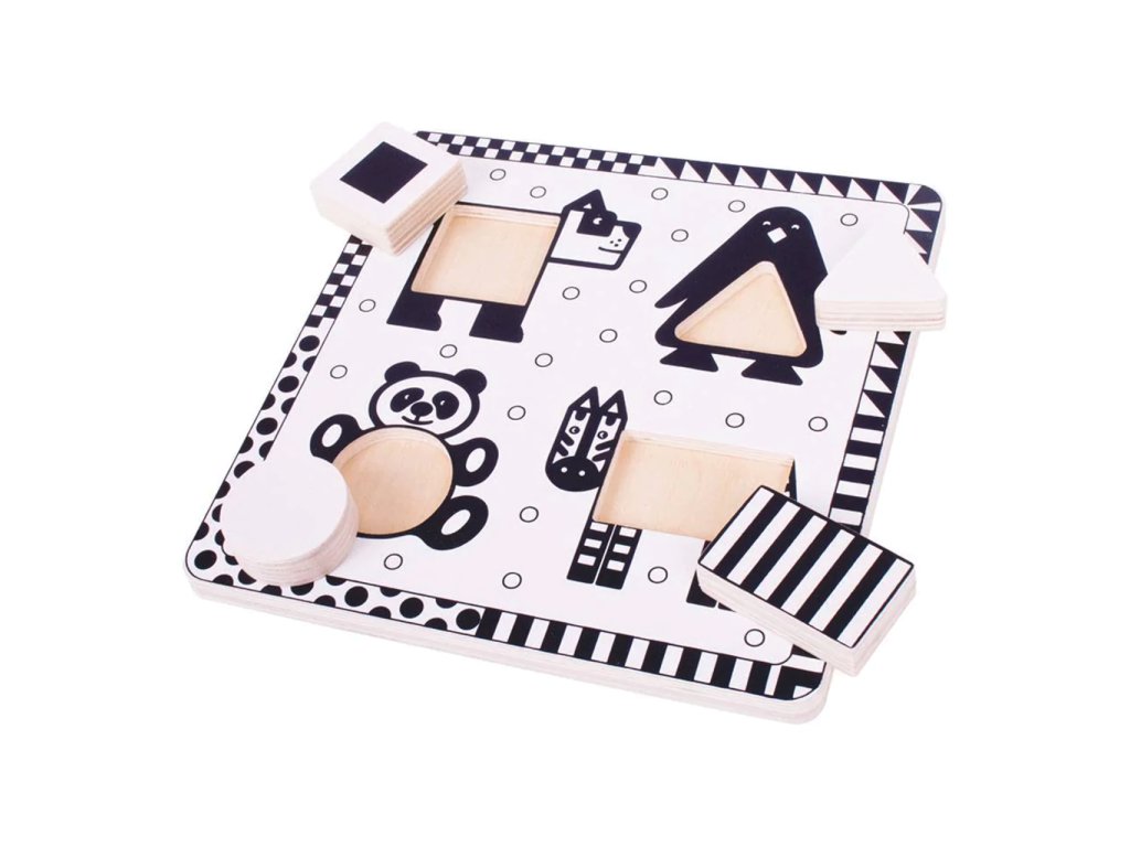 Bigjigs Toys Dřevěné vkládací puzzle černobílé tvary 1