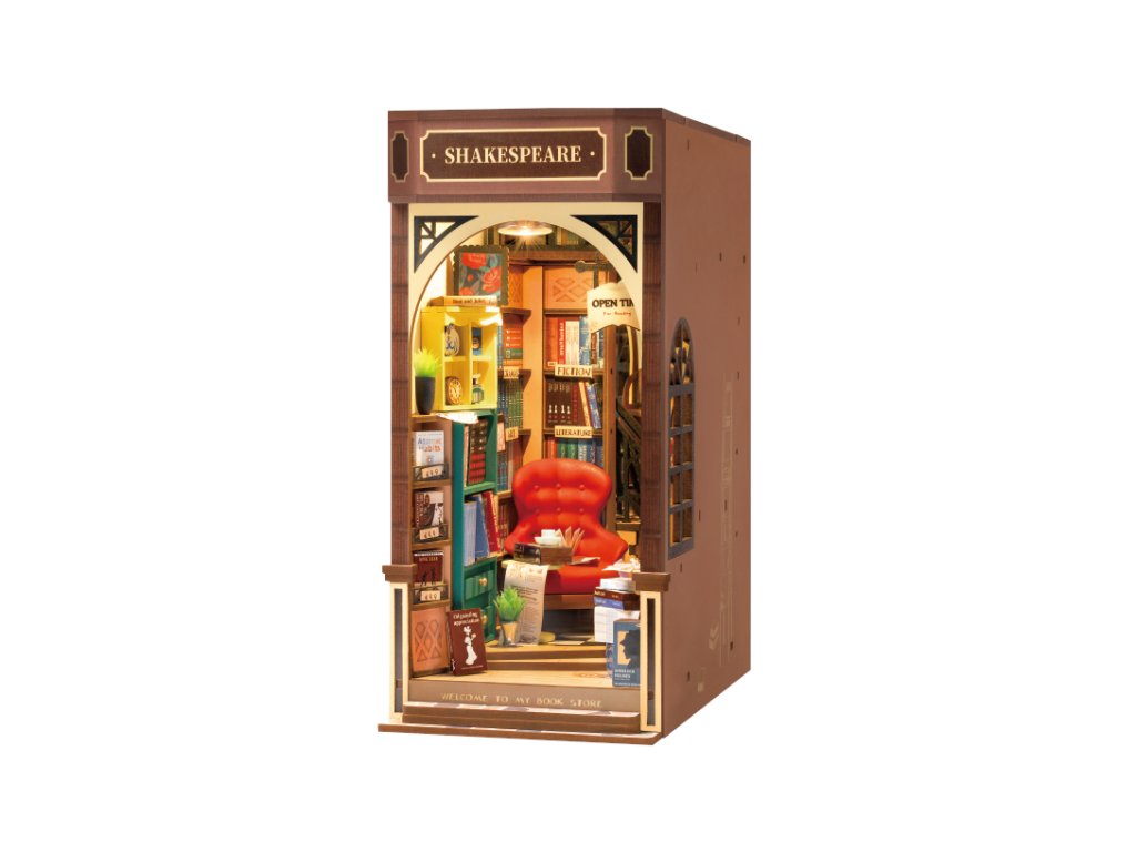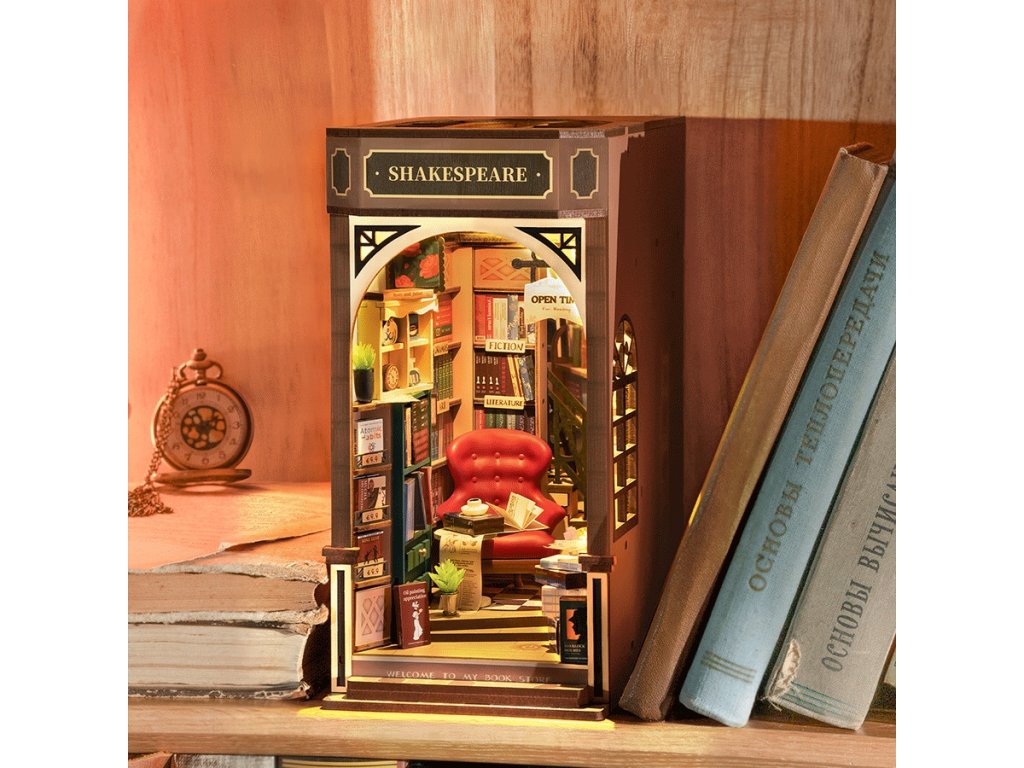 Objevte zázračný svět literatury a retro šarmu s miniaturou domečku knihkupectví, zvaného "Shakespearovo knihkupectví". Představte si, že jste jako starý Tom, věrný zákazník knihkupectví, který se zamiloval do kouzla tohoto jedinečného místa. Každý kousek, od starobylého barevného okna až po červenou sametovou pohovku, ožívá v naší pečlivě sestavené sadě. Se sadou RoboTime Zarážka na knihy miniatura domečku Knihkupectví si můžete vychutnat potěšení z čtení v klidném a pohodlném prostředí, které jste si sami vytvořili. K dispozici máte 194 kusů materiálů, včetně překližky, MDF desky a papíru, abyste mohli rekonstruovat oblíbené Tomovo knihkupectví. Azurově modré okno, velká sametová pohovka, regály přeplněné knihami a dokonce malá úložná skříňka plná pokladů - vše je zahrnuto v sestavě. Kdo by nechtěl mít takové kouzelné místo doma? Se sadou RoboTime Zarážka na knihy miniatura domečku Knihkupectví se můžete ponořit do světa literatury a retro šarmu, ať už jste v jakémkoli věku. Stavění sady je také skvělou aktivitou pro celou rodinu. Společně můžete vytvářet vzpomínky, zatímco sestavujete své vlastní knihkupectví. Je vhodný nejen k vlastnímu potěšení, ale také jako dárek. Všechny jeho součásti jsou přizpůsobeny ke snadné vestavbě. Dodáváno s podrobným návodem k sestavení. Baterie potřebné k napájení nejsou součástí stavebnice. Hlavní vlastnosti: 194 precizně vyřezávaných dílůbaterie (2 kusy AAA/LR03/AM4 1,5V) doba sestavení cca 3-4 hodinyLED osvětlenívhodné od 14 let