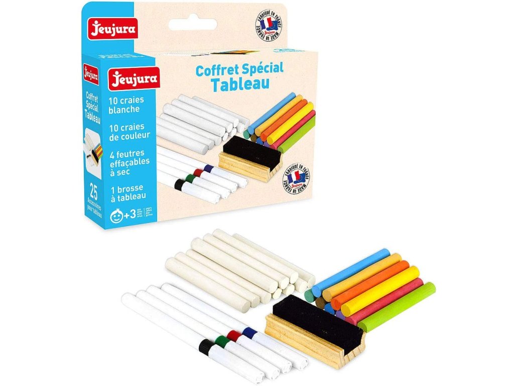 Ideální sada pro kreativní dítka. Balení obsahuje 10 bílých kříd, 10 barevných kříd, 4 barevné popisovače na bílou tabuli a 1 houbičku s dřevěnou rukojetí. Hlavní vlastnosti: 10 ks bílých kříd, 10 ks barevných kříd, 4 barevné popisovače, houbičkavyrobeno ve Francii